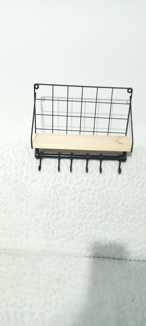 Bej ahşap raf ve siyah metal ızgara sırtlı, altı askılı dolap düzenleyici. Eşyalarınızı asmak ve düzenlemek için kullanışlı bir ürün. güzel sarıp gonderecem kırılırsa bana ait değil iade kabul etmiyorum bilginize