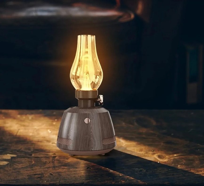 Bej renkli, ahşap tabanlı ve açık bej cam şapkası olan masa lambası, sıcak ortam aydınlatması sağlar. Klasik tasarıma modern dokunuş katıyor.Ayrıca Bluetooth bağlantısı ile müzik keyfi sunar.