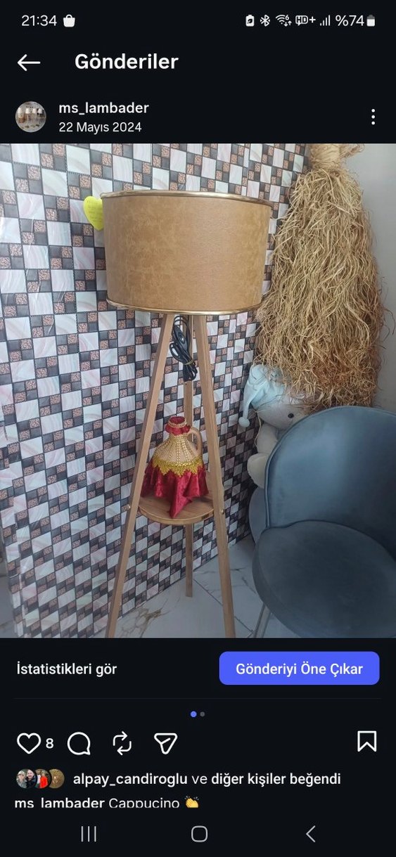 Bej Ahşap Tripod Lambader