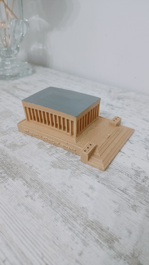 Bej renkte, detaylı sütunlar ve basamaklara sahip Anıtkabir maket kiti. Hafif renkli malzemeden üretilmiştir. ️anıtkabirden alınmıştır.