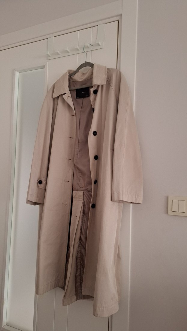 Bej renkli trençkot, düğmeli ön ve kesimli yaka detaylarına sahip. Regular fit ve uzun kollu, günlük şıklık için uygun mükemmel , doğal kumaştan üretilmıştır. Orijinal Mango