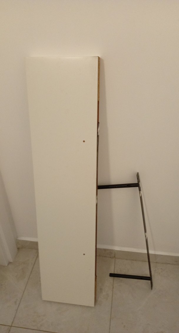 Bej askı standı, gri metal destekli, basit ve kullanışlı tasarıma sahip.