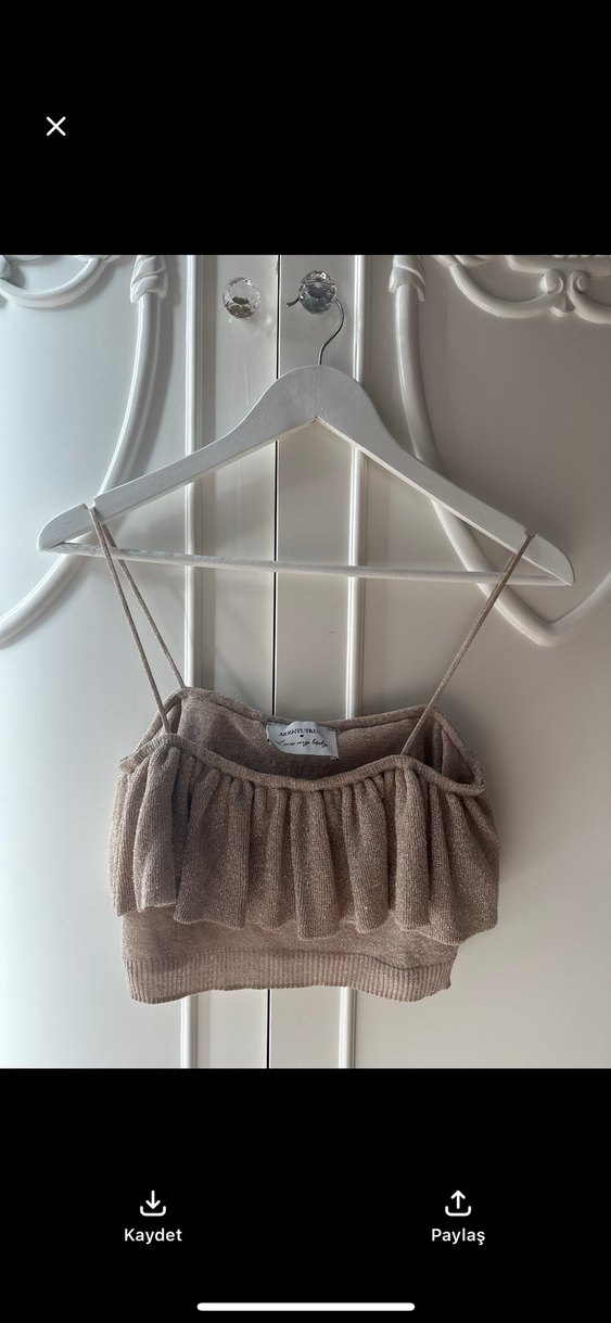 Kum rengi sim detaylı askılı şık bluz/Love My Body