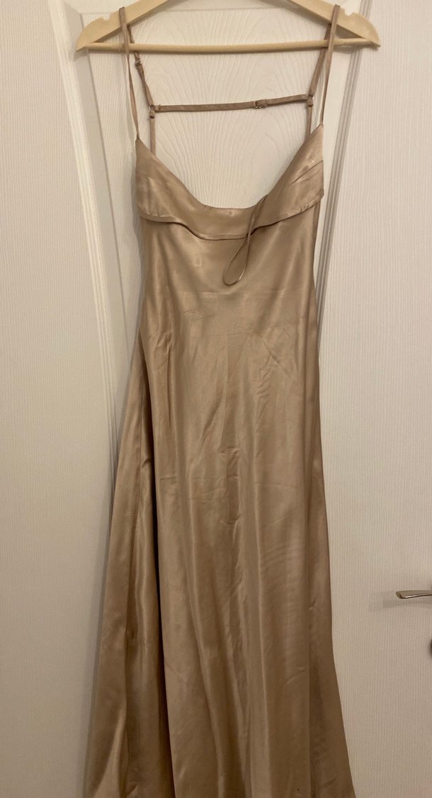 Bej askılı elbise