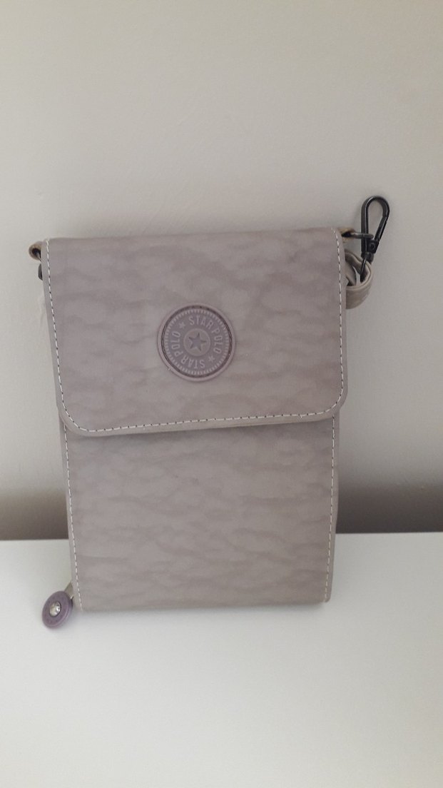 Bej rengi askılı çanta. kalem izi var silmeyi denemedim çıkabilir.