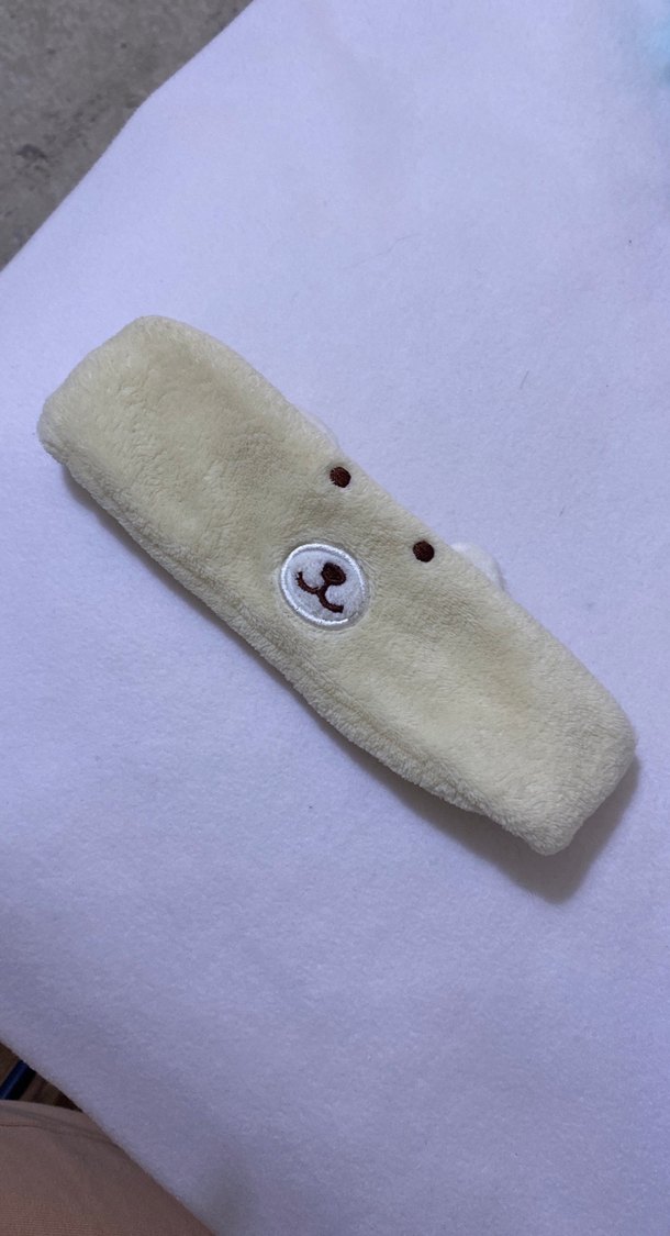 Yumuşak kumaştan yapılmış, sevimli ayıcık yüzü nakışlı bej renkli sac bandi