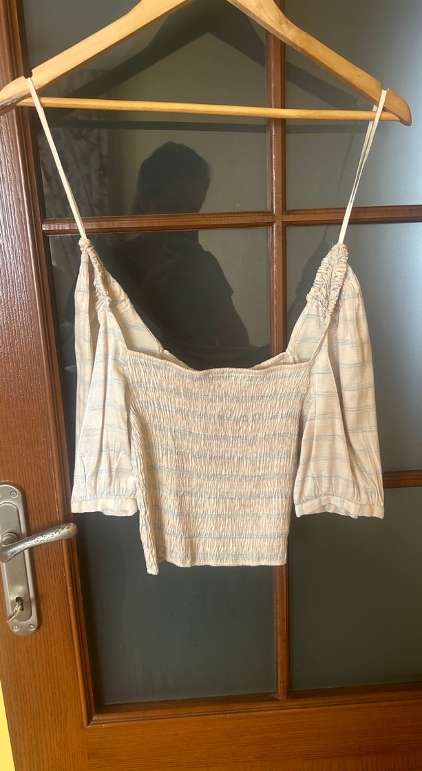 Bağcıklı kolları ve kayık yaka detayı ile bol kesim bej keten mini bluz. Pileli ve pastel tonlarda batik desenlidir, günlük kullanım için uygun. 34 ama s uyumlu