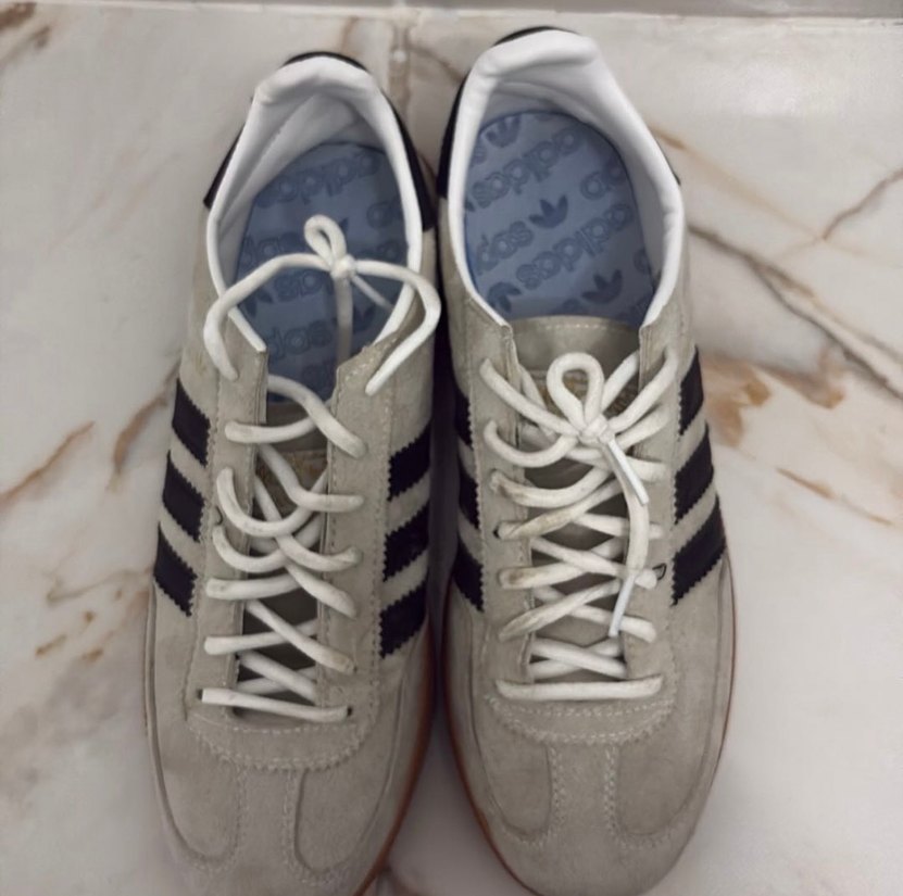 Bej renkte, bağcıklı ve düz tabanlı erkek adidas spezial spor ayakkabısı. Sokak stili ve dayanıklı kauçuk malzemeden üretilmiştir. Ürün 2 kere giyilmiştir.