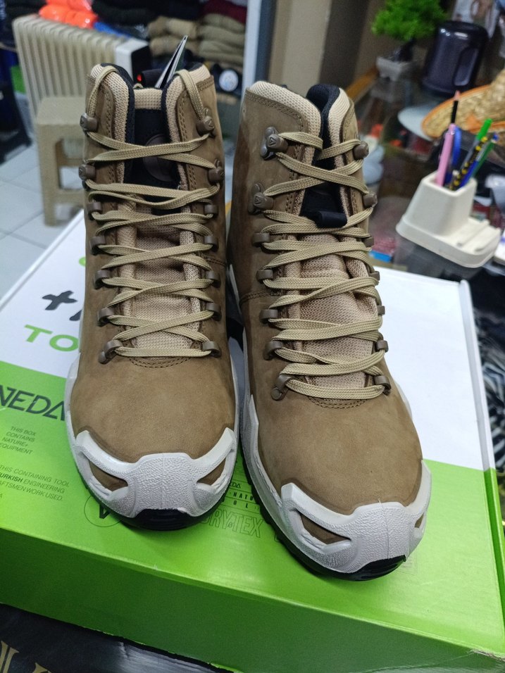 Bej renkli, bağcıklı ve kauçuk malzemeden yapılmış erkek outdoor botları. Gri detaylar ve "EDL" yazısı bulunur. Sokak stili için uygun. VANEDA NUBUK VİZON