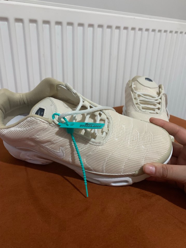 Bej renkli, bağcıklı, kauçuk tabanlı erkek spor ayakkabısı. Spor için uygun sade ve rahat tasarım.