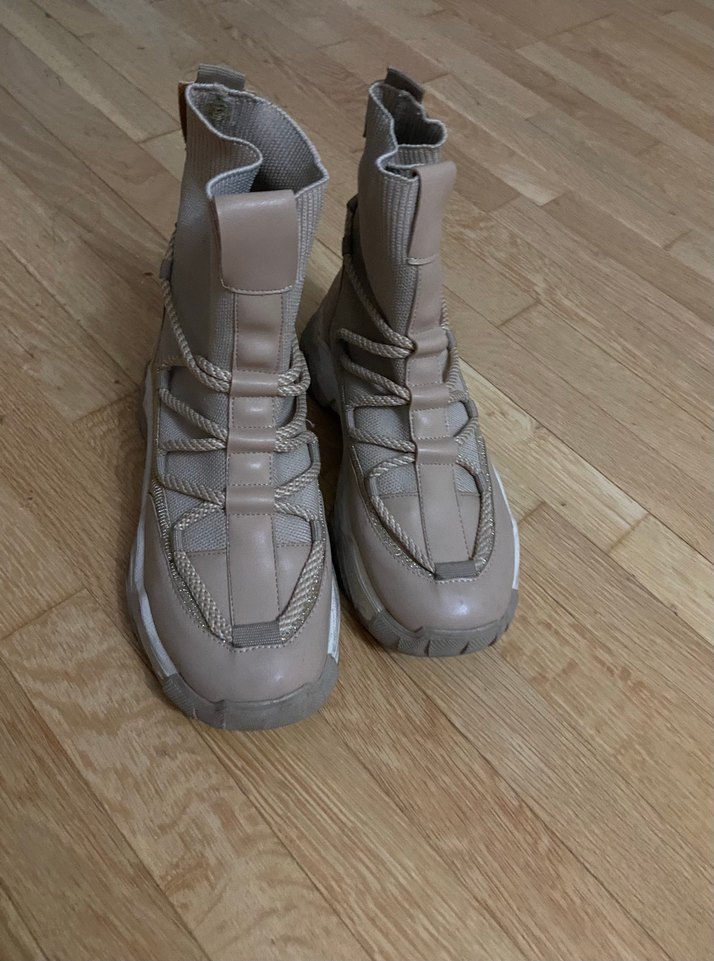 Bej renkte, kadın botu. Bağcıklı tasarımıyla sokak stiline uygun ve günlük kullanıma idealdir. Desensiz ve şık görünüme sahiptir.