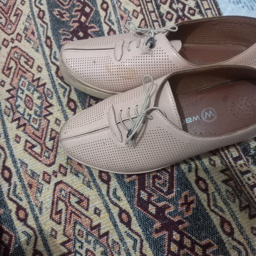 Bej renkte, bağcıklı ve delikli üst yüzeye sahip kadın dolgu topuklu ayakkabılar, minimalist tarzı günlük rahatlıkla birleştirir.