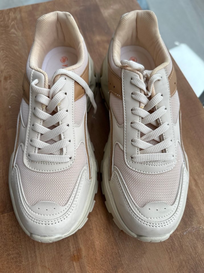 Bej Bağcıklı Kadın Spor Ayakkabı