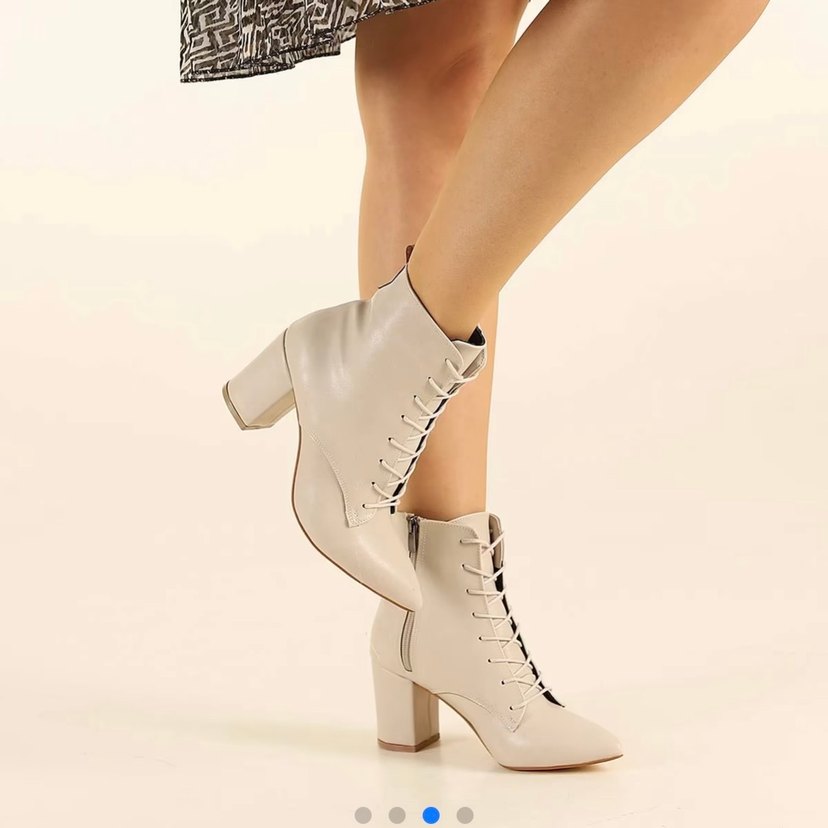 Bej deri bağcıklı botlar, blok topuklu ve modern tasarımlı olup günlük rahatlık sağlar. Trendy ve şık bir seçimdir.