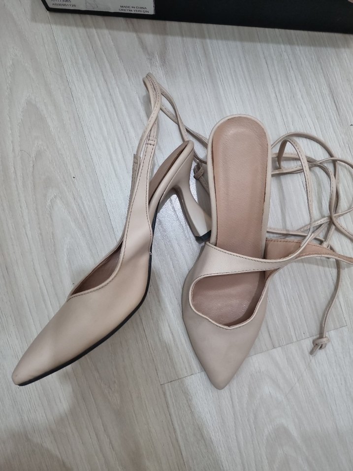 Bej bağcıklı stiletto topuklu kadın ayakkabı, 37 numara, taban kısmında hafif kalkmalar var, soho marka.