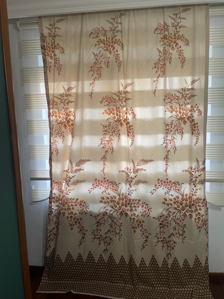 Açık bej renkte, yaprak motifli geleneksel bağlama desenine sahip perde, pencereler için yumuşak ve doğal bir görünüm sunar.