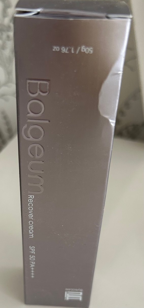 Bej tonunda, SPF korumalı Balgeum Recover BB krem, cilt kapatıcılığı ve bakımı sağlar. Gri kutuda.