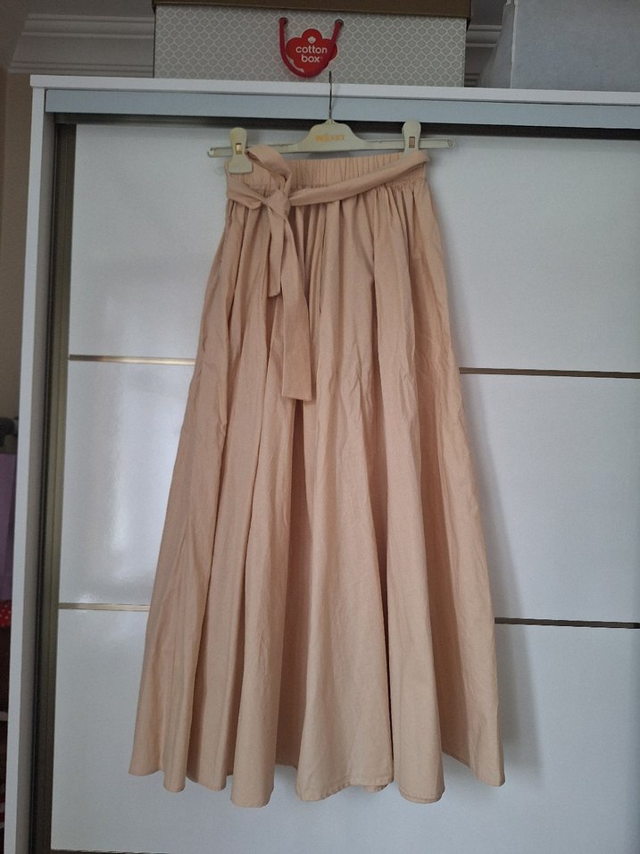 balon model kemerli ve her iki tarafında da cepli beli fermuarlı boyu 90 cm bel 30 cm