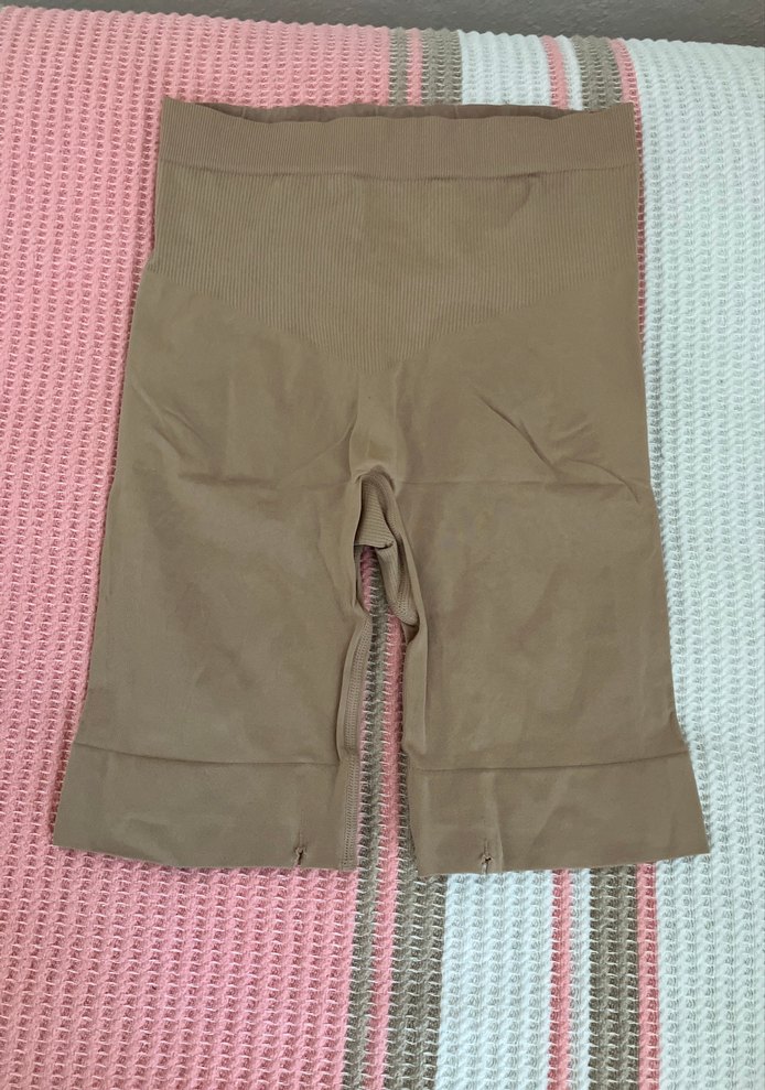 Bej renkte, elastik bel bandına sahip, rahat sentetik kumaştan yapılmış, kısa ve dar kesim korse Günlük sokak stiline uygun. Ufak hasarı mevcut