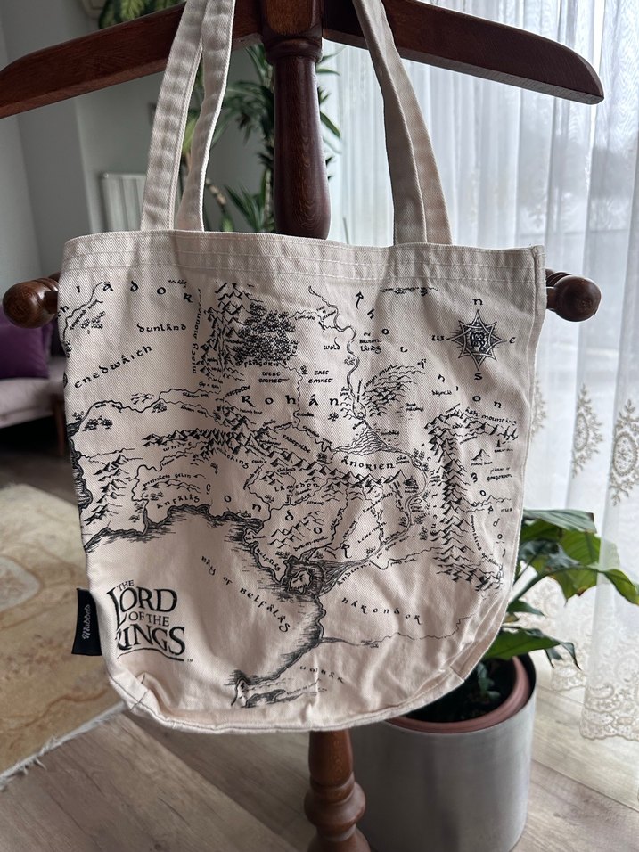 Bej çanta, baskılı eski harita deseni, günlük kullanım için minimal stil ile uyumlu. Mabbels marka Derinlik: 38cm En: 30cm