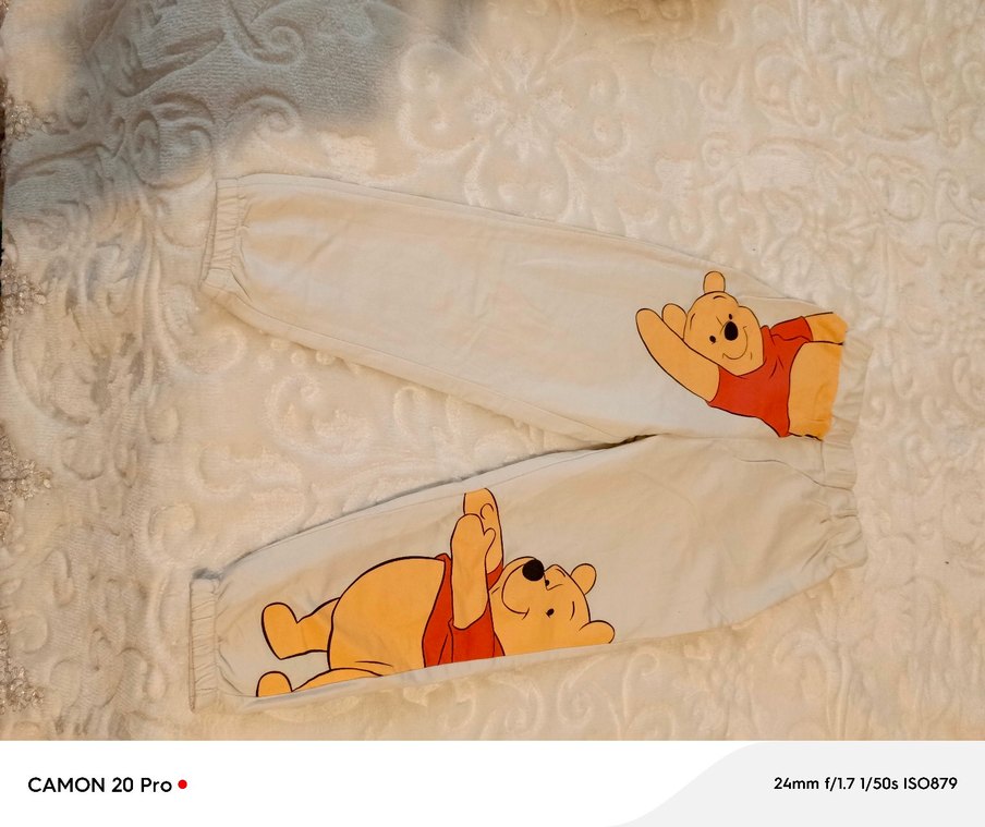 Yumuşak ve sıcak kumaştan yapılmış bej renkli çocuk uyku pantolonu, üzerinde Winnie the Pooh baskıları bulunur. Pastel tonlarıyla rahat uyku sağlar.