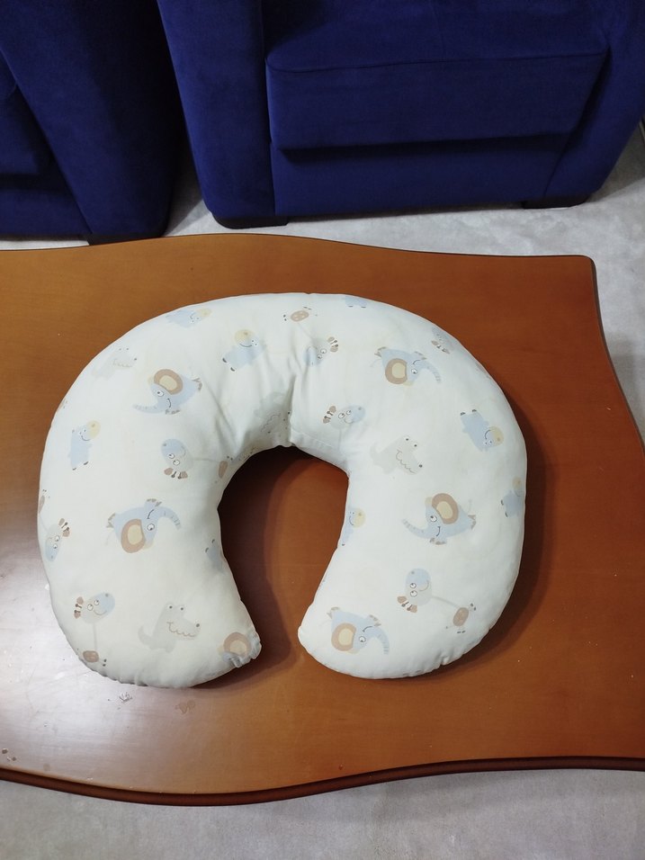 Bej renkli, pastel baskılı hamile ve emzirme yastığı, konforlu kullanım için tasarlanmıştır.