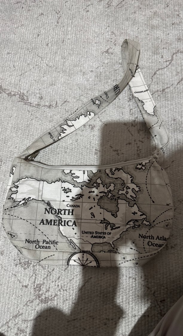 Bej renkli, baskılı harita deseniyle sentetik kumaştan yapılmış, fermuarlı kadın çantasıdır. Paris sokak modasını yansıtan tarzı ve günlük kullanıma uygundur.