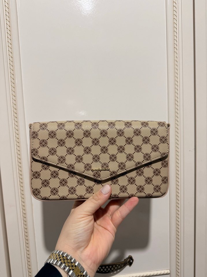Sentetik kumaştan yapılmış, baskılı desene ve tokalı detaya sahip bej kadın çantası. Modern klasik tarzı Paris esintisiyle birleştirir, günlük kullanım için uygundur. Kusursuz