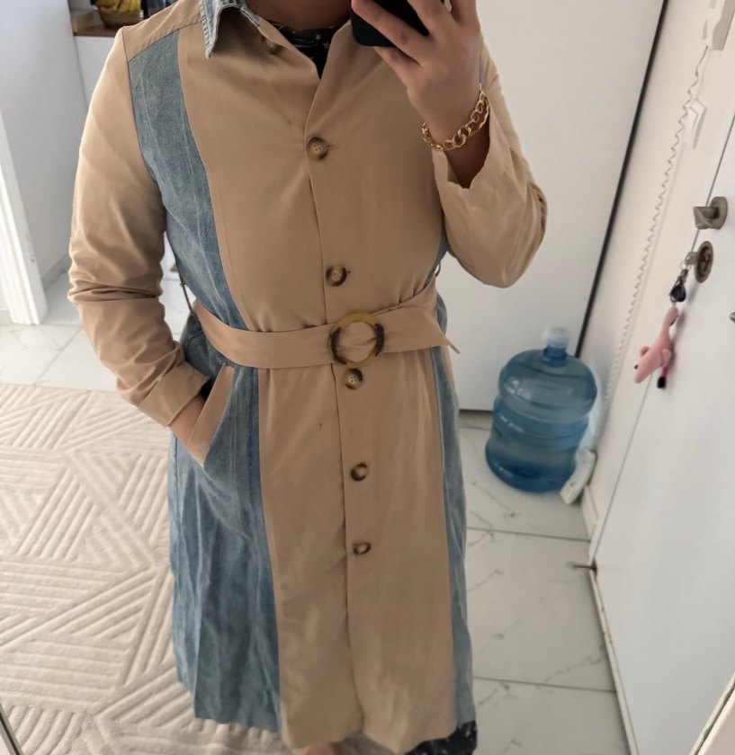 Bej Baskılı Kadın Denim Ceket