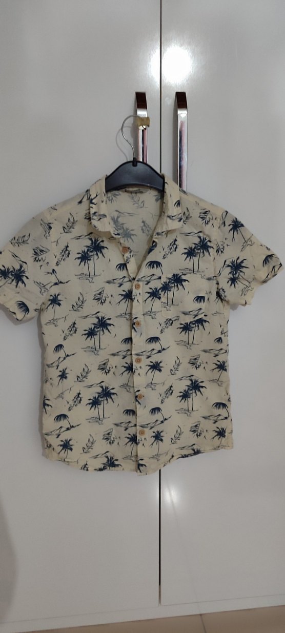 Bej Baskılı Kısa Kollu Erkek Gömlek 9 10 yaş