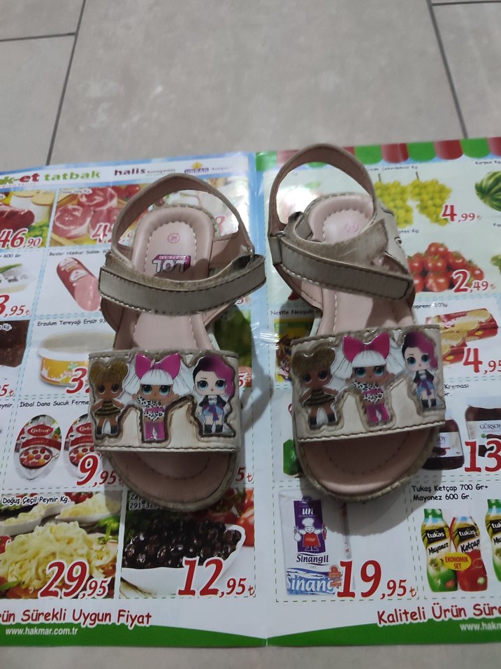 Bej Baskılı Kız Çocuk Sandaletleri Tokalı