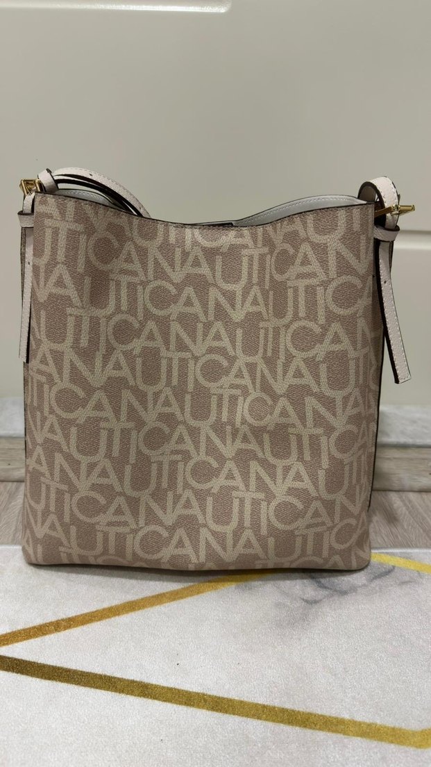 Bej renkte baskılı Nautica desenli kadın çantası, sentetik kumaştan üretilmiş ve tokalı askıya sahip. Günlük kullanıma uygun çağdaş tarzda bir model. Çanta bu yaz mağazadan alındı hediye olarak. ancak olduğu gibi duruyor. Orıjınaldir, sıfırdan farkı yoktur hiç kullanılmadı.