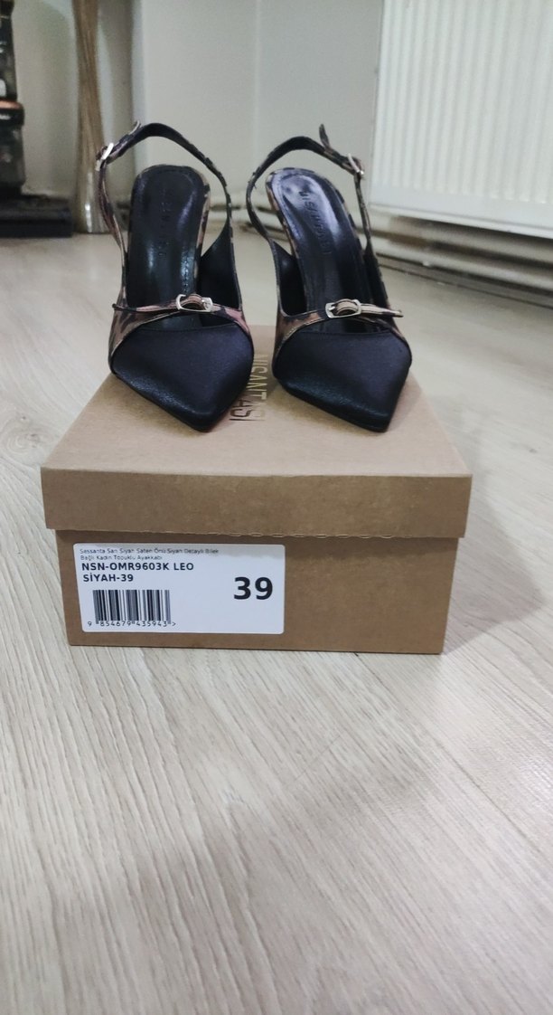 Bej baskılı kadın ayakkabısı, stiletto topuklu ve tokalıdır. Klasik şıklık ve modern tarzı bir araya getirir. Ofis kullanımı için uygundur.
