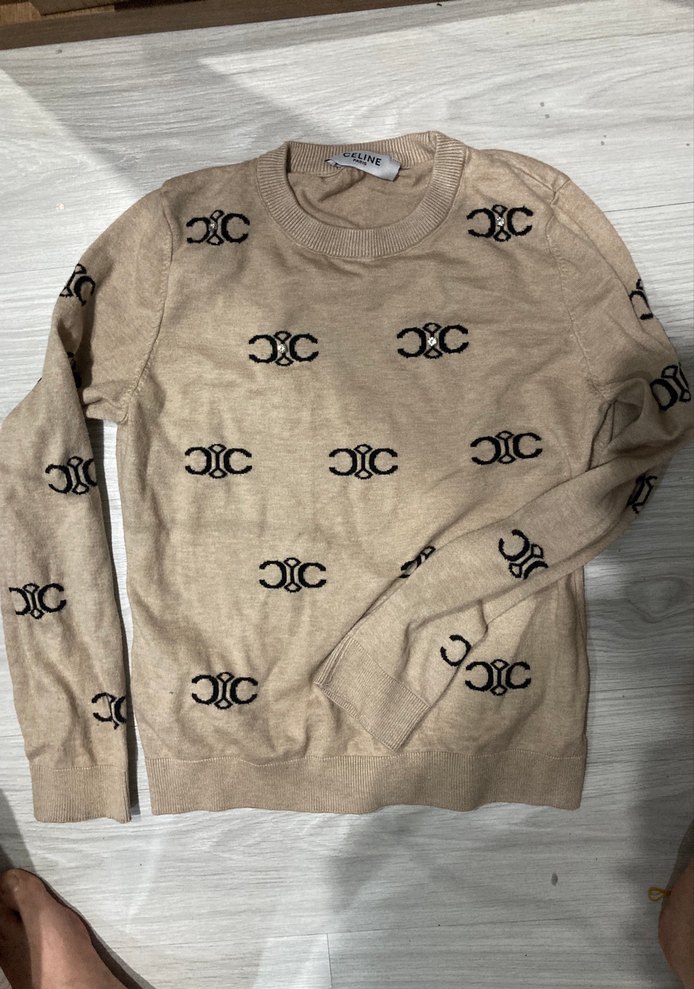 Bej renkte, baskılı detaylara sahip, yuvarlak yaka, uzun kollu ve vücuda oturan triko kadın kazak. Günlük kullanıma uygun.celine kaşmirdir bi kere giydim kurutma makinesinde çekti bedeni M uygun olur etikete aldanmayin bu yüzden fiyatı baya uygun tuttum