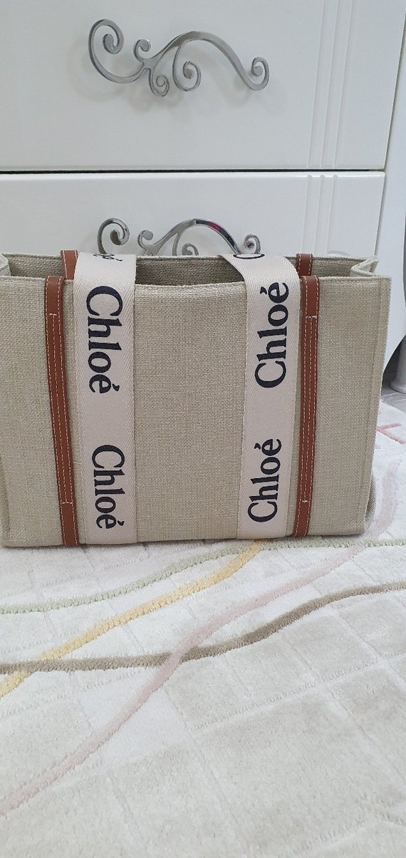 Bej renkli, baskılı gri detaylara sahip tekstil kadın çantası, velcro kapamalı ve 'Chloé' markalıdır. Bohem tarzda, günlük kullanıma uygundur. sadece 2.fotoğrafda görüldüğü gibi dikişi attı ama hiç bir şeye engel değil sorunsuz kullanılıyor