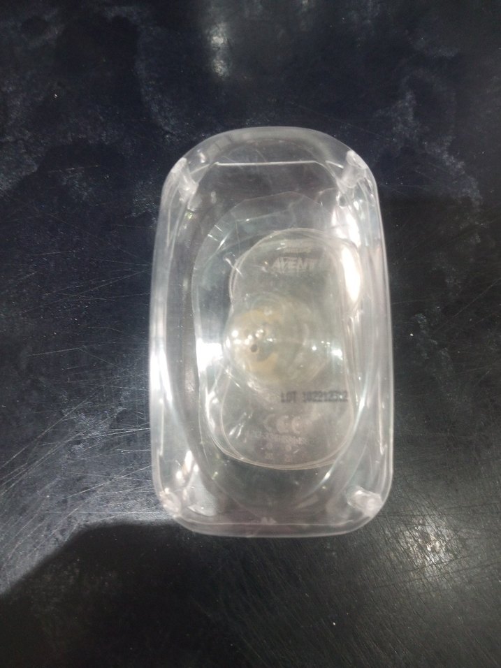 Bej renkte, şeffaf tasarımlı, yumuşak emzikli hafif bebek biberonu. Kullanımı kolaydır.