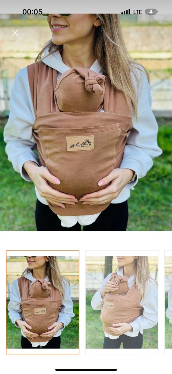 Yumuşak kumaştan yapılmış bej bebek kanguru sling, bebeğinizi rahat taşımak için destek sağlar. Aldım ama hiç kullanmadım çok temiz