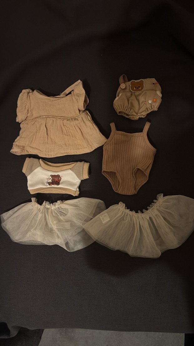 Bu bej bebek kız kombin seti, askılı ve kısa kollu, yumuşak kumaşlı üst, şort, fitilli body ve iki tül etek içerir. Zahmetsiz şıklık sunar.