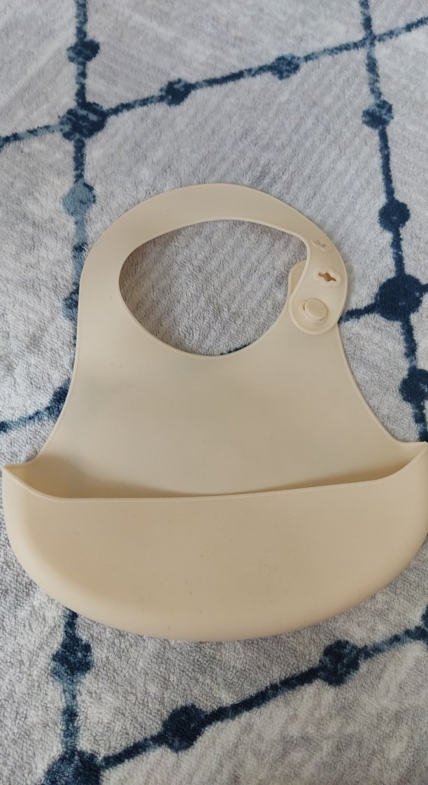 Yumuşak ve esnek yapıda, yiyecekleri toplamak için cep bulunan bej bebek mama önlüğü. Kolay temizlenir ve ayarlanabilir boyun kapaması vardır. ️