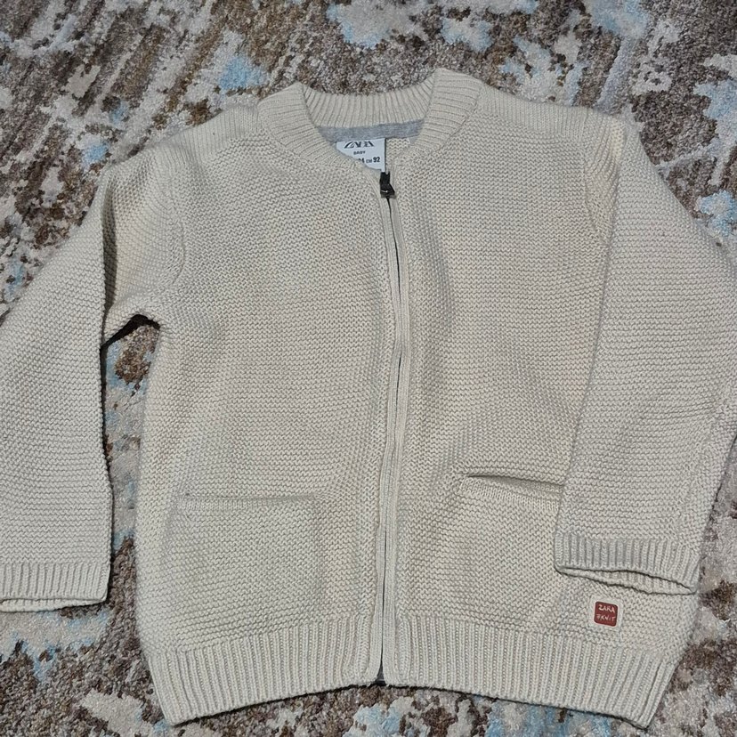 Bej renkli, uzun kollu, örgü bebek hırkasıdır. Rahat kesimi ve fermuarlı önü ile sokak tarzına uygundur. İki ön cebi vardır. Ürün cok temiz ve defosuz. Beden 92cm Renk seceneklerinde bej olmadigindan camel secildi.