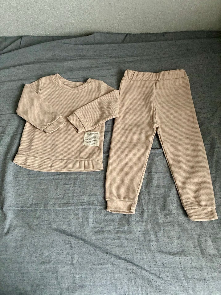 Bej renkte, yumuşak ve sıcak kumaştan yapılmış uzun kollu ve bisiklet yaka bebek takımı. Rahatlık için elastik bel bantlı pantolon ile tamamlanmıştır. Pastel tonlarda sade tasarıma sahiptir.
