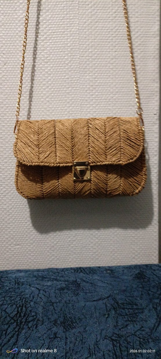 Bej renkte, kemerli tasarıma sahip bohem tarzı kadın omuz çantasıdır. Dokulu sentetik kumaştan yapılmış ve altın renk zincir askılıdır. Günlük kullanım için uygundur.