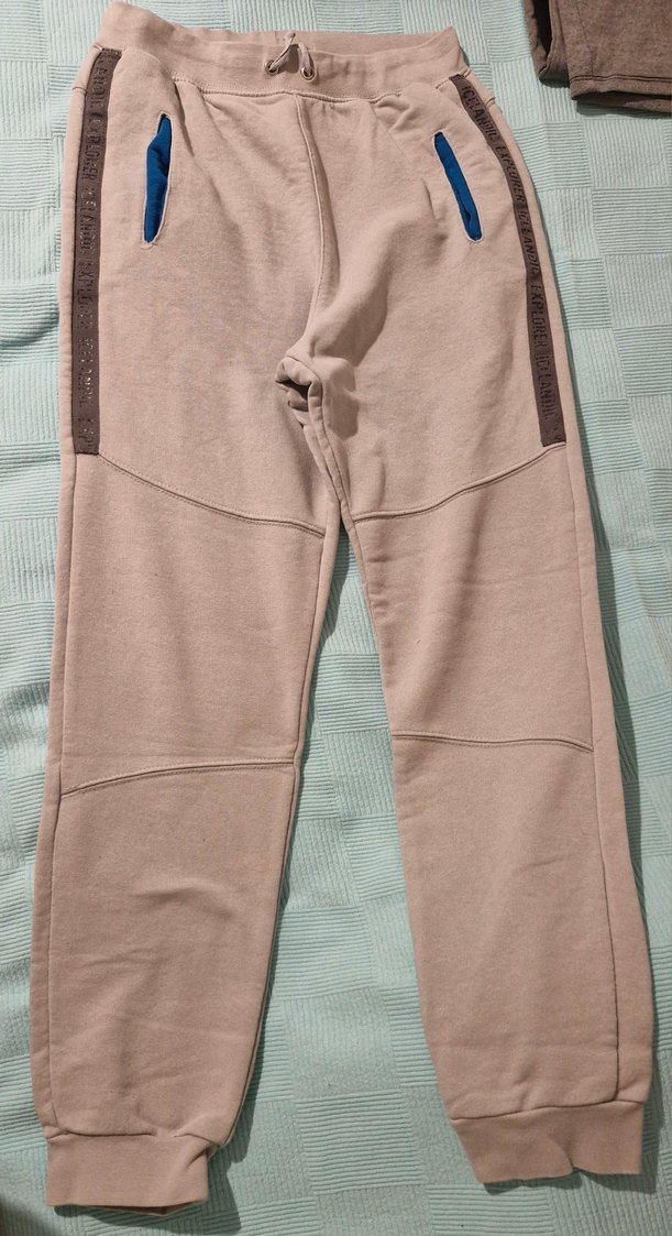 Bej renkli, bel bantlı, bol kesim erkek outdoor eşofman altı. Sentetik kumaştan, midi boyda ve pastel tonlarda, günlük kullanıma uygun.