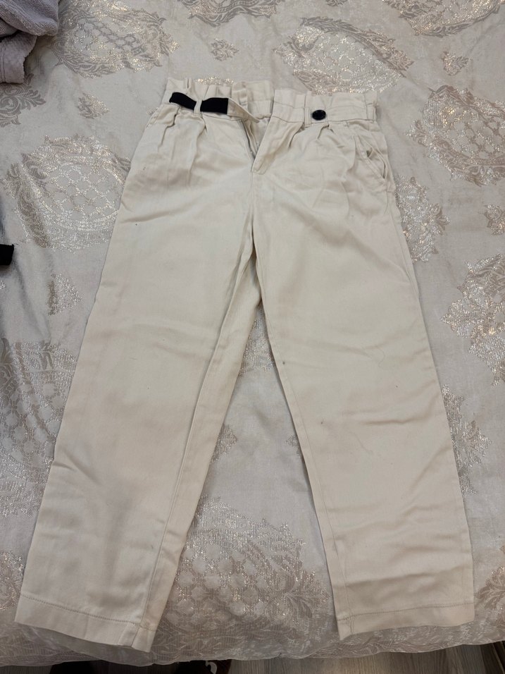 Bej renkli, pamuk kumaştan yapılmış, bel detaylı ve regular fit erkek çocuk pantolonu, rahat sokak stili için uygun.