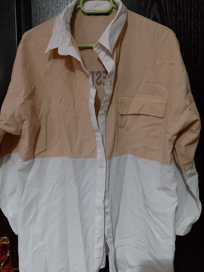 Sıfır ayarında defosu yoktur,, yıkanmış tır ütulenmeden resim çektim,,,Kadın gömlek, uzun kollu ve yakalıdır. Pamuklu kumaştan yapılmış, bej ve beyaz renkleri düğmeli detaylarla birleştirir. Günlük rahat sokak stili için uygundur.