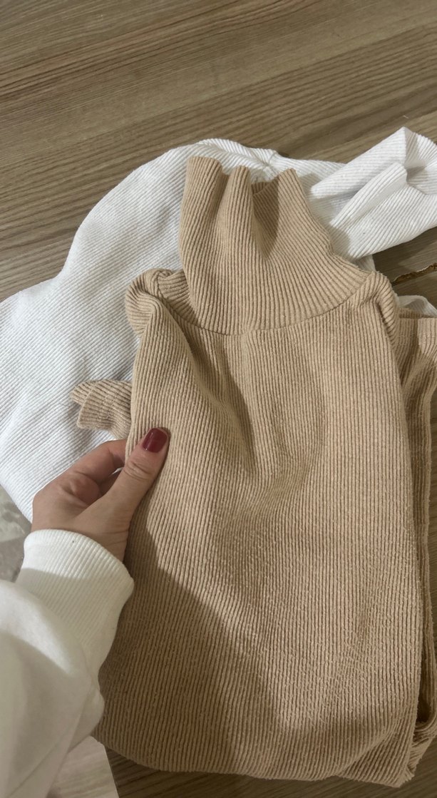 Bej ve beyaz renklerinde 2 adet, boyunlu body, triko boğazlı ve uzun kollu, ince kesim kadın kazağı. Triko kumaştan sahip, rahat ve hafif yapıda, günlük kullanıma uygun normal boyda. Not! Beyaz kazakta belli belirsiz sarı tonlarında leke var, çıkacağını düşünüyorum fiyatlarını uygun tuttum son fotoğrafta ekledim.