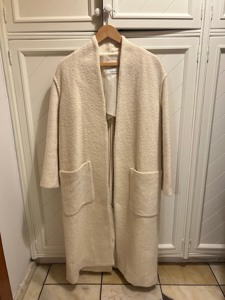 Bej-Beyaz Uzun Mango Suit Kadın Kaban