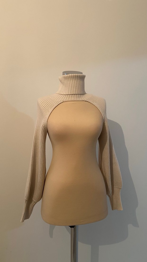 Bej renkli, boğazlı, uzun kollu ve triko kumaştan üretilmiş kadın kazak. Fitted kesimi ve midi uzunluğu ile günlük kullanıma uygun rahat ve şık bir tasarım.