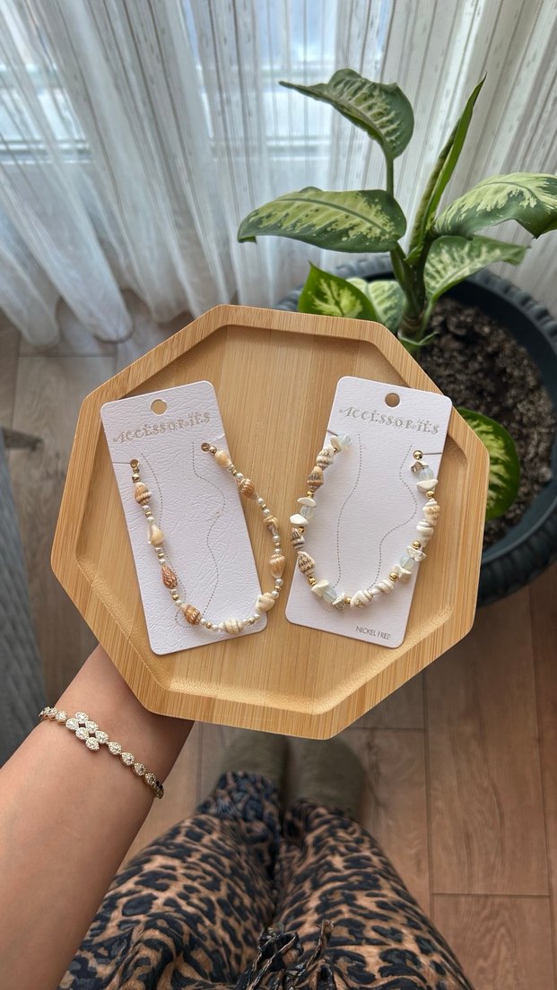 Pastel bej tonlarda, baskılı detaylı boncuklu bohem tarzı bileklikler, günlük minimal kullanıma uygun. Marka temsilidir