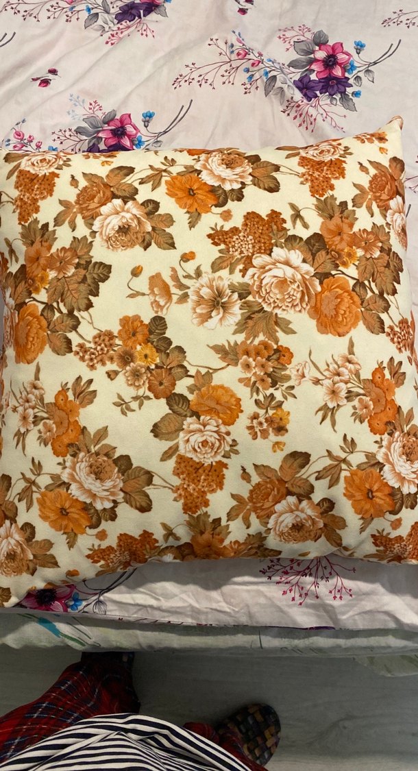 Bohem tarzda, pastel tonlarda çiçek desenli bej renkli dekoratif yastık. Sıcak sonbahar renkleriyle rahat bir görünüm sunar 10 adet ellimde var koltuk yastıkları çok temiz ve yenidir